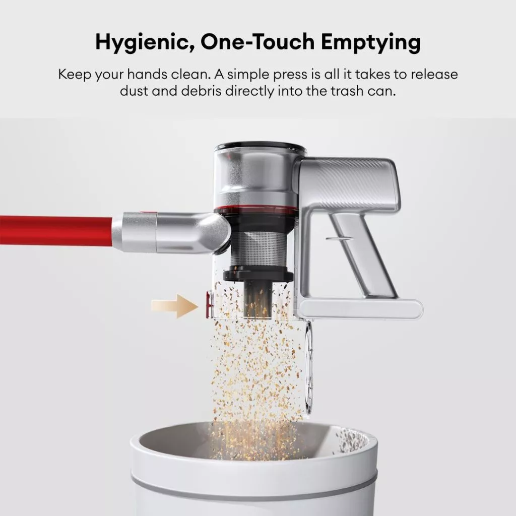 Experience hassle-free cleaning with a larger dust cup, reducing the need for frequent emptying.